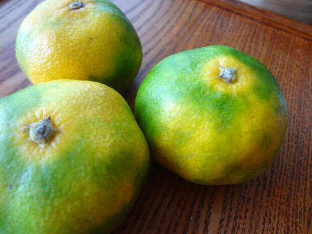 Мандарины с зелеными пятнами свидетельствуют о болезни фрукта. Ненатуральный восковой блеск на кожуре значит, что мандарины обработали фунгицидами.Это делают, чтобы защитить фрукты от грибка. Но в больших дозах фунгициды могут вызвать почечную недостаточность. Особенно их пагубное действие усиливается при употреблении алкоголя. Поверхность мандарина должна быть шероховатой от природы.