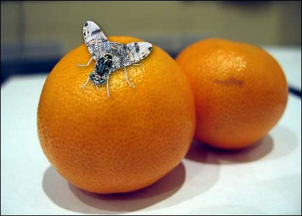 Средиземноморские мухи – опасные вредители. Они питаются кожурой фруктов и овощей. Следы личинок можно заметить на кожуре мандарина в местах гниения и цветения.Когда употребляешь в пищу такие мандарины, есть риск заразиться личинками паразитов и получить отравление.