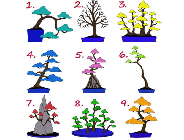 Нужно просто взглянуть на картинку и выбрать дерево, которое тебе больше по нраву. Каждое из стилизованных изображений деревьев отвечает определенному характеру.