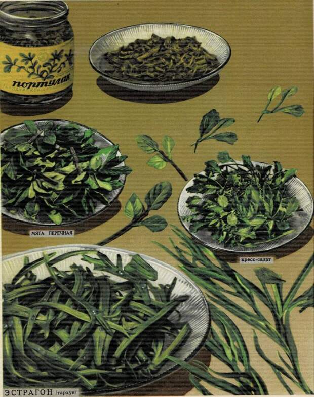 А вот этого всего тогда просто не было! На рынке продавали в пучках укроп, петрушку, и всё! Всё вот это, изображенное на этой иллюстрации, было «где-то там», в другой жизни, а реально отсутствовало