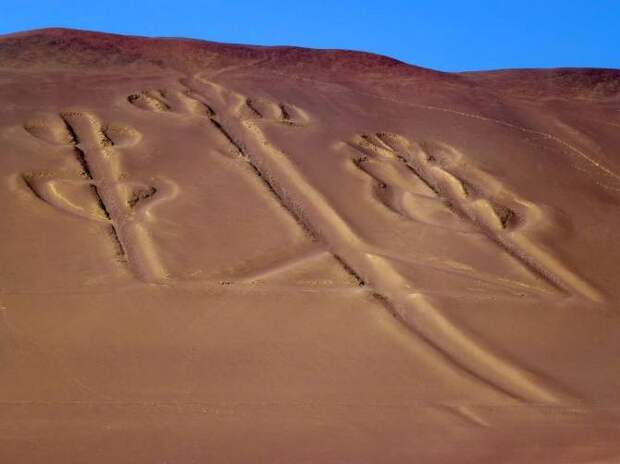 Один из самых удивительных рисунков на поверхности земли — гигантский трезубец, увенчанный изображениями людей и животных, — называется «канделябром Паракаса». Он с незапамятных времен украшает обращенный к морю песчаный склон полуострова Паракас в 300 км от столицы Перу.