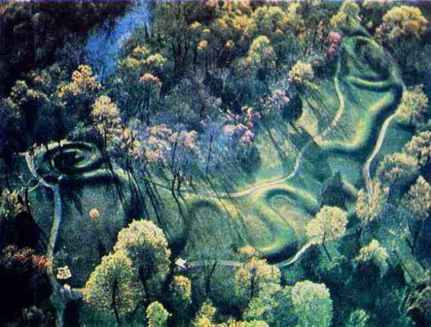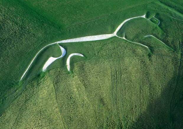 Многие склоны известняковых холмов украшают фигуры лошадей, которым поклонялисьдревние кельты. Самое знаменитое изображение длиной 111м находится в Уффингтоне неподалеку от Оксфорда, а в Уэстбери некогда красовался конь с длинным, согнутым в полукруг туловищем и огромным глазом, но... в XVIII в. древний геоглиф исчез, а на его месте появилась другая белая лошадка во вполне натуралистичном стиле.