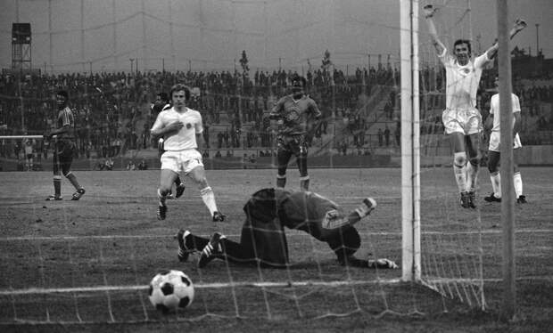 Югославец Бранко Облек забил седьмой гол в ворота Заира во время матча на Кубке мира в Гельзенкирхене, ФРГ 18 июня 1974 года. Пропустивший гол вратарь Заира Димби Тубиланду бьется в отчаянии об землю. Югославия выигрывала тот матч со счетом 9:0. Фото: AP Photo |