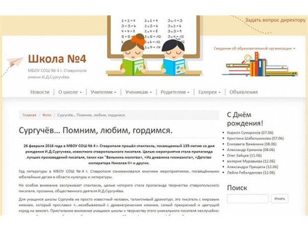 Примерно так выглядел бы заголовок на сайте школы №4 города Ставрополя, если бы администрация и педагогический коллектив были честны и имели смелость открыто признать, кого они предлагают детям в качестве примера для подражания. Речь идёт о почитаемом ныне в Ставропольском крае писателе Илье Дмитриевиче Сургучёве. Кстати, сама школа теперь "гордо" носит имя этого самого Сургучёва.