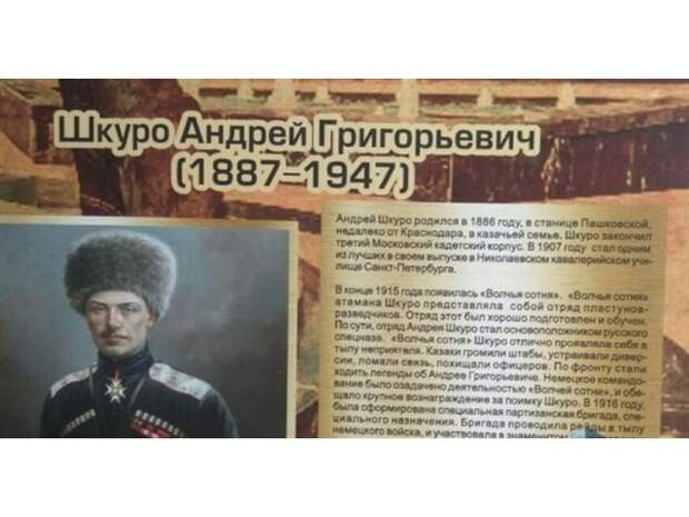 Да, да, дорогие друзья, вы не ошиблись, воспитанникам детского сада, в качестве героя и примера для подражания навязывают группенфюрера СС Андрея Шкуро. Как вам надпись: "Популярность Шкуро на Кубани набирает обороты, Андрей Григорьевич Шкуро становится настоящим народным героем Кубани."?