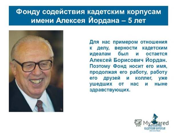 Продолжаем наш перечень "единичных" недоразумений. Следующим на очереди является благотворительный фонд содействия кадетским корпусам имени Алексея Йордана. Фонд занимается возрождением кадетских корпусов, и оказывает регулярную поддержку кадетским образовательным учреждениям.