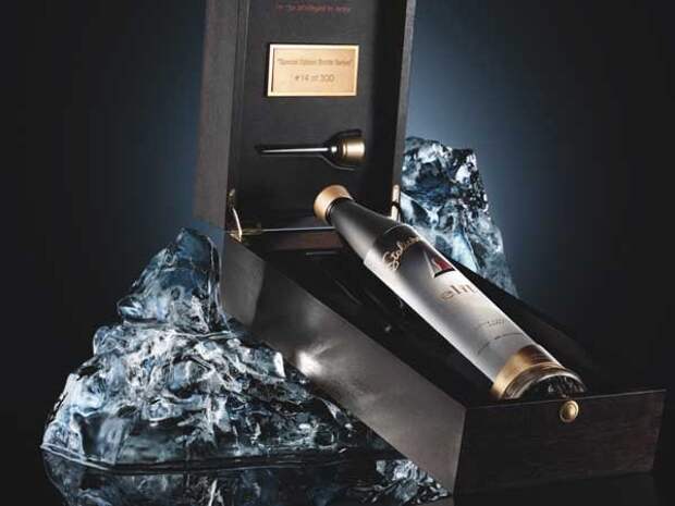 В этой водке – чистейшая вода из скважин в горах Гималаев и зёрна русской озимой пшеницы. Бутылки выдуваются из стекла вручную, а в комплекте прилагается золочёный нож для колки льда.