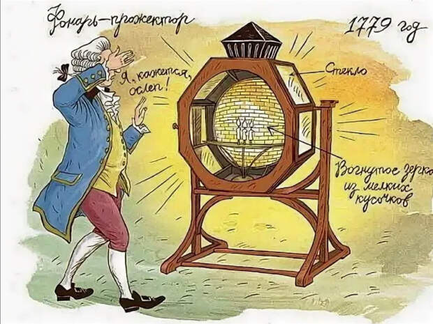 Ещё одним полезным изобретением Кулибина стал зеркальный фонарь – прожектор. В нём свет даже слабой масляной лампы усиливался окружающими её зеркалами. На испытаниях 1779 года огонь кулибинского прожектора из Петербурга увидели за 24 версты от него, в Красном Селе. Этот фонарь стали употреблять для огня маяков. Но только в 1794 году, под влиянием французских работ, Кулибин предложил использовать своё изобретение для постройки первой в России линии оптического телеграфа. Эта задумка была осуществлена уже после смерти Кулибина.