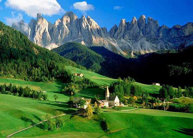 Это красивый маленький сельский поселок, расположенный в живописной долине в Фунес, итальянский Тироль. Он имеет небольшую красивую церковь Санта Магдалена, и один из самых красивых пейзажей не только в Европе, но и во всем мире.