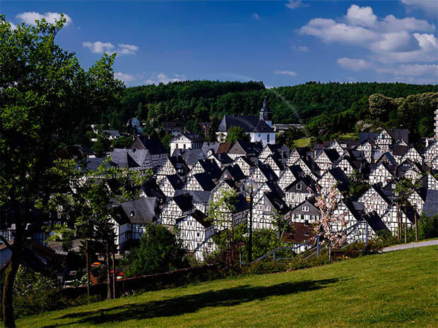 В центре города, в районе под названием Alter Flecken, вы можете увидеть много черно-белых фахверковых домов, формирующих ряды. Это наиболее характерное и фотографируемое изображение Фройденберга.